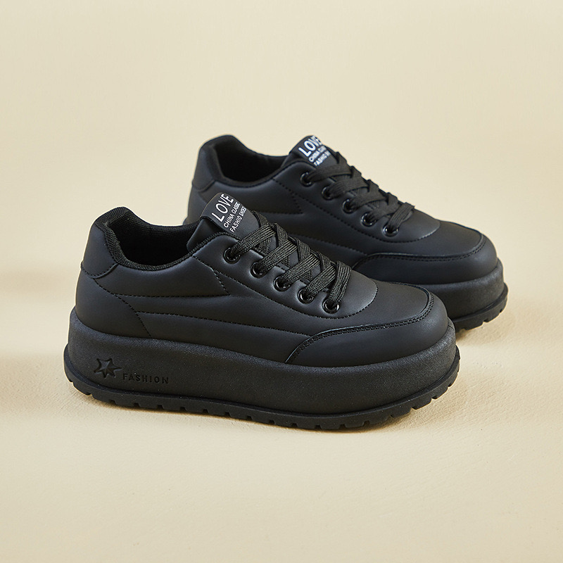 經典板鞋版型,厚底設計拉長比例,防水皮面易打理,多場景穿搭都合適