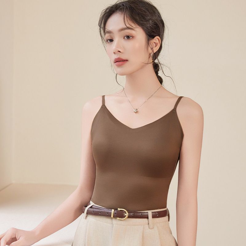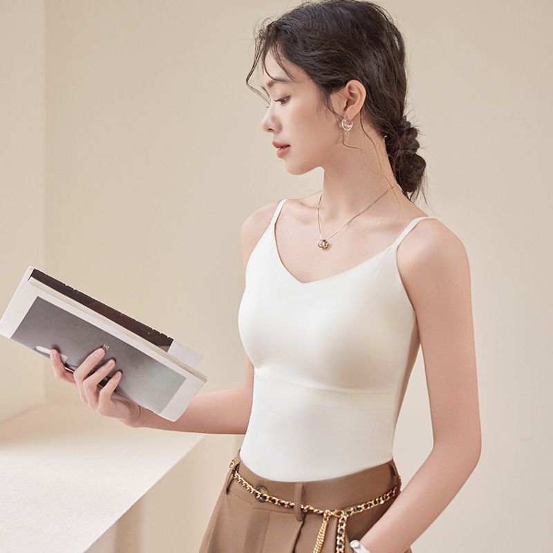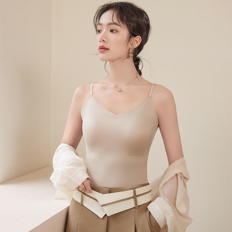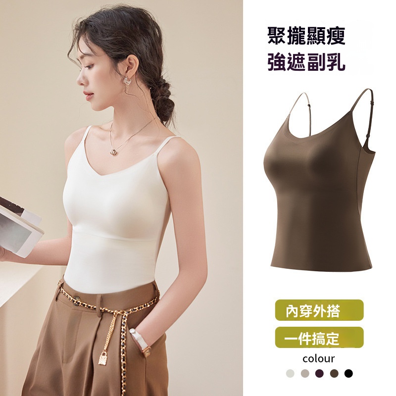 日韓春季單品銷量TOP1【冰感雙生肌·無痕吊帶背心】春夏穿搭作弊神器!外穿撩人×內搭隱形,V領殺出天鵝頸,「自備胸墊+收副乳」,從春日疊穿到盛夏單穿的全能王