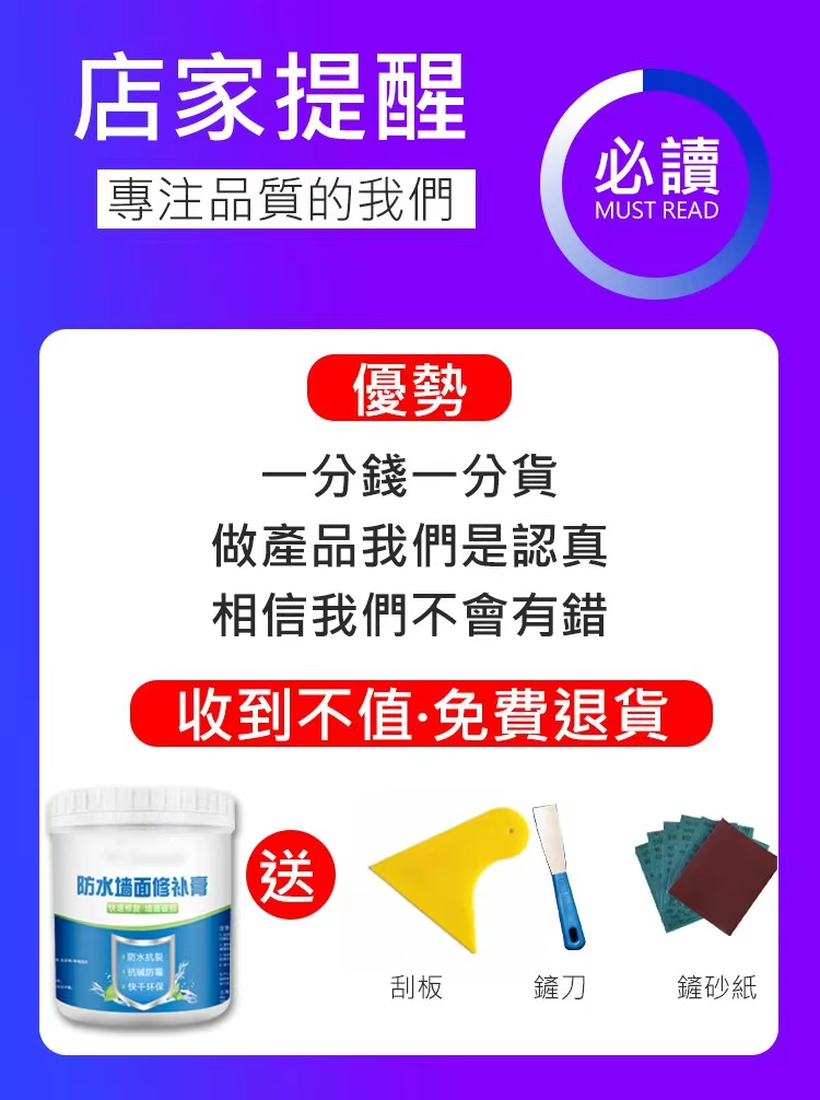 【現貨】新升級三防工藝補墙膏!防水,防污,防霉,抗裂!補一次耐用50年,防水防 污防微!無需調配,不刮腻子不刷漆!