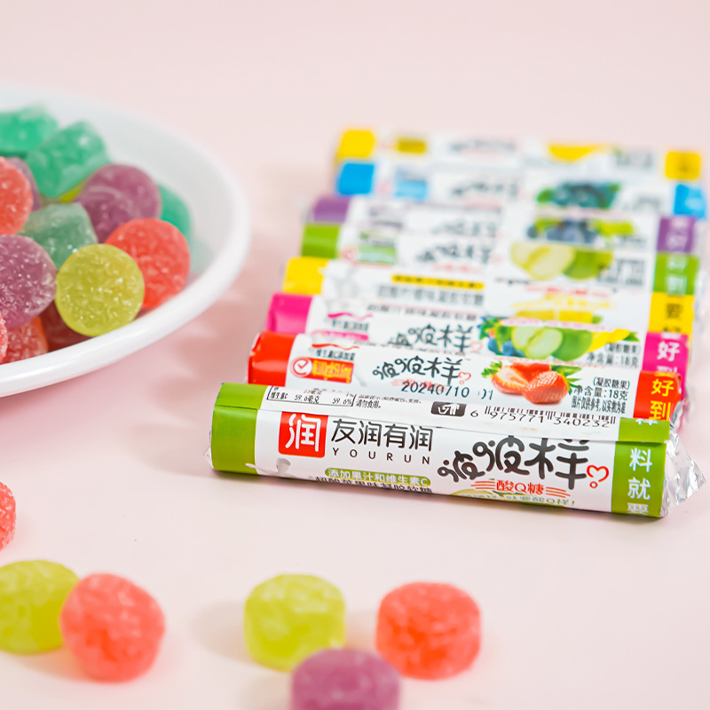 酸Q糖啵啵樣軟糖童年酸甜小零食維C橡皮果味懷舊節兒時糖果